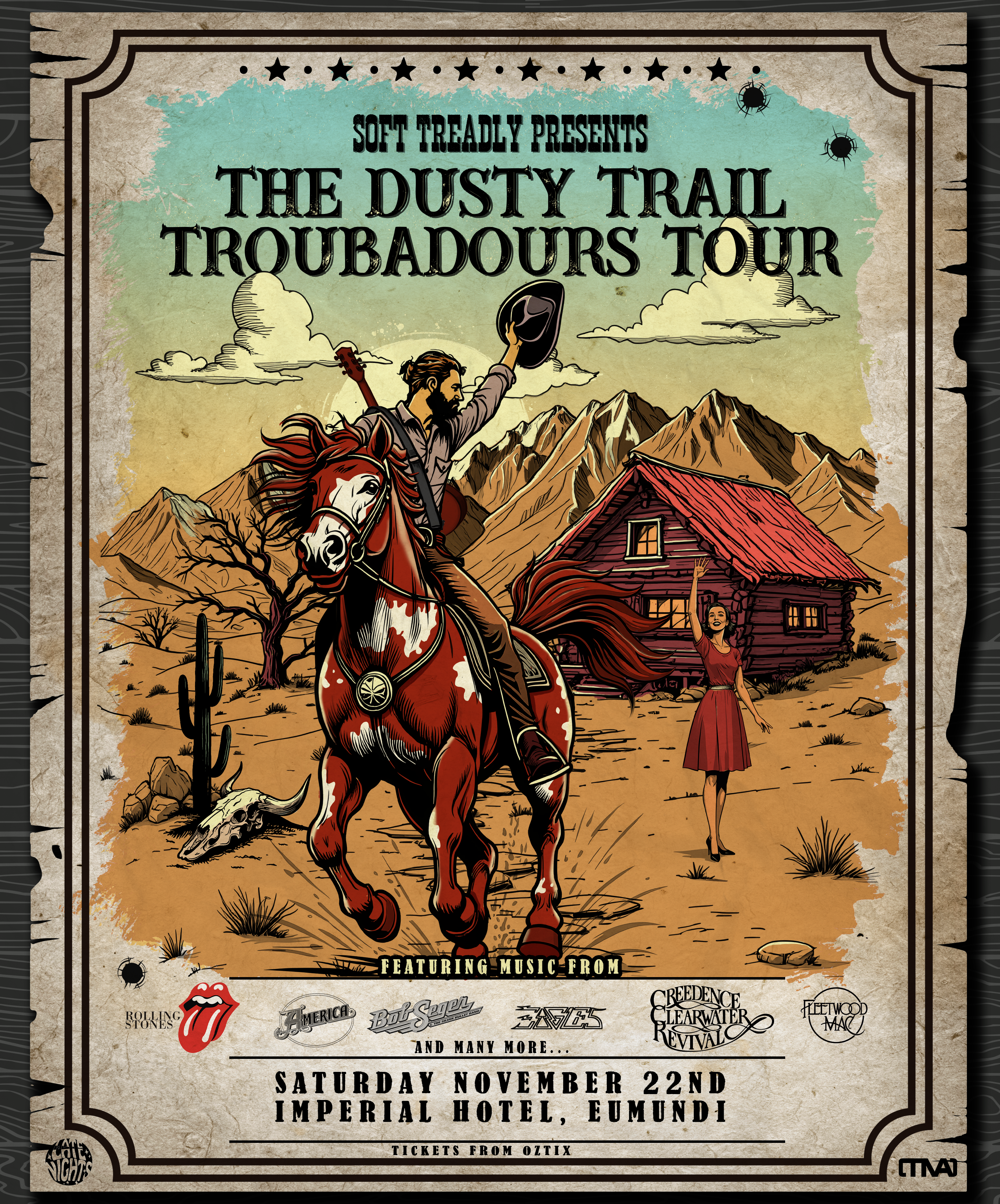 Fresh from their highly acclaimed Talking Heads and David Bowie tribute tours, Brisbane’s own Soft Treadly return with a brand-new setlist designed to get you hollering, two-stepping, and singing along from the first chord to the final encore.